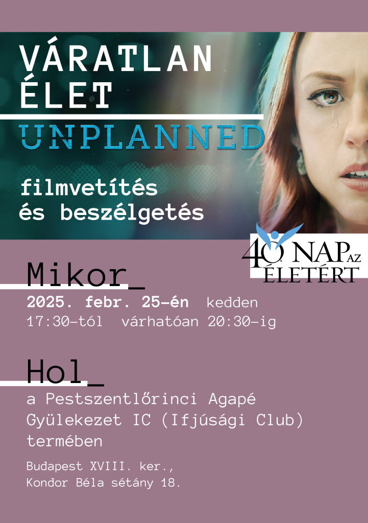 2025. február 25-én, kedden 17:30-tól közössen nézhetjük meg a Váratlan élet című filmet a Pestszentlőrinci Agapé Ifjúsági Club termében (1181 Budapest, Kondor Béla sétány 18.)!