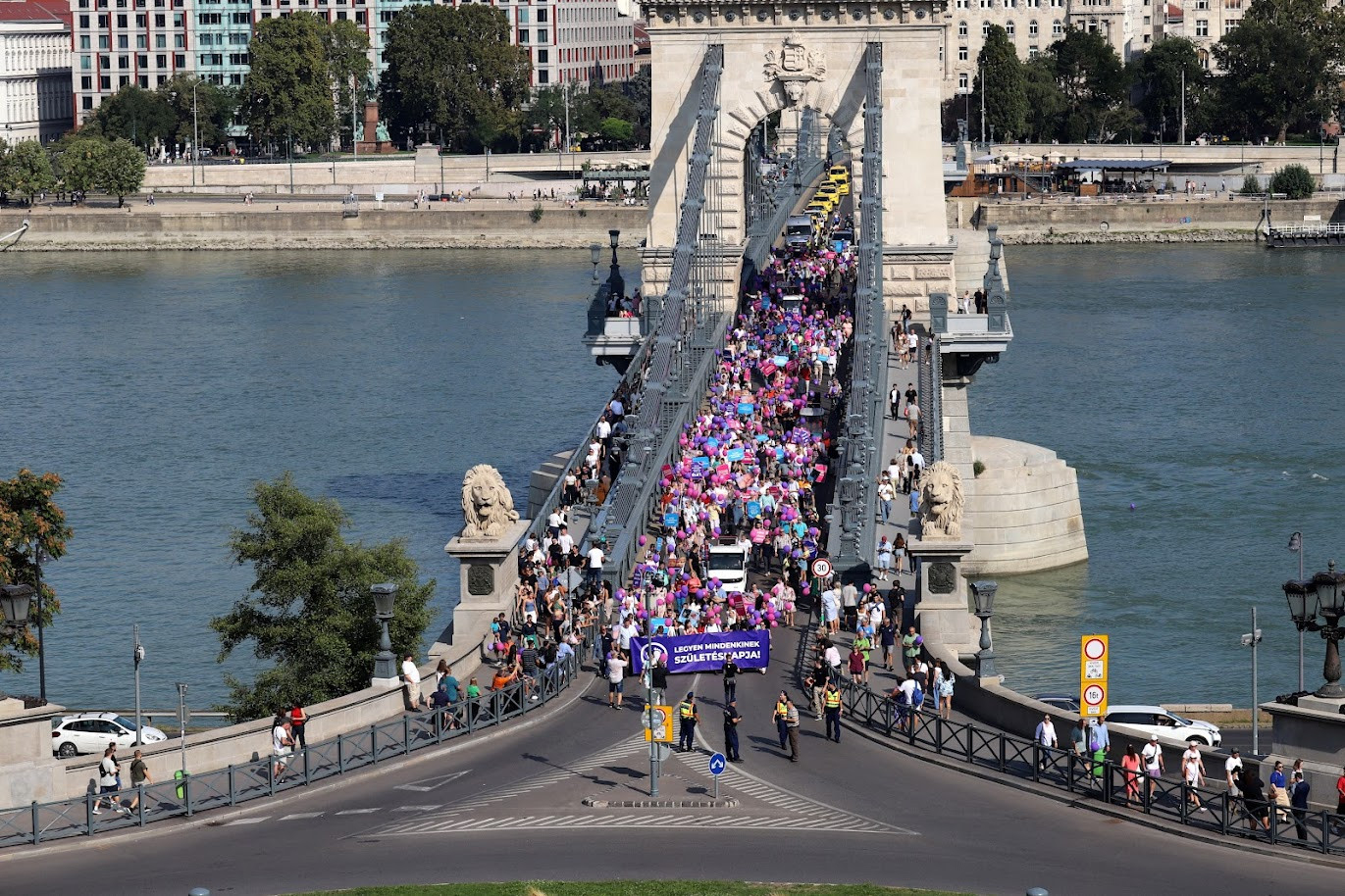 A felvonulók ezt követően a Lánchídon átsétálva, a Várkert Bazár előtt végighaladva jutottak el a Tabánig, az események az ott felállított színpadon folytatódtak. Menet közben öröm volt látni a turisták, arra járók arcát, akik többségében mosolyogva fogadták a menetet, többen szelfiztek is a Lánchídon áthaladó emberekkel.
